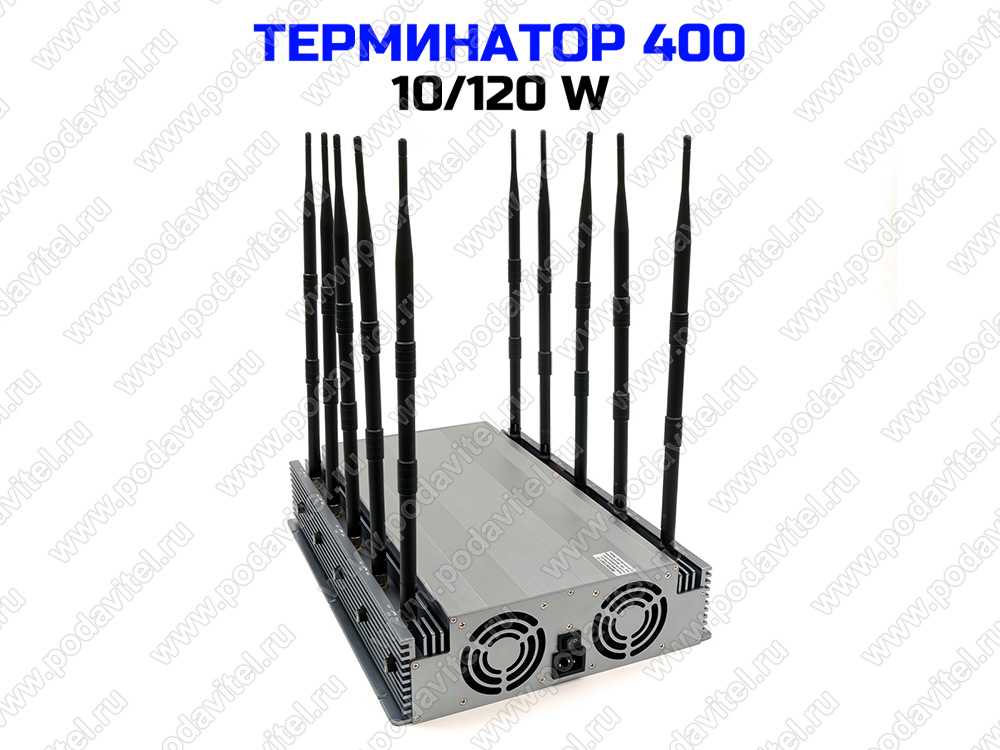 Подавитель связи, интернета, дронов и БПЛА «Терминатор 400-10х120» применяется для блокировки передачи данных в наиболее часто используемых диапазонах частот беспроводной связи - прибор подавляет 10 основных частот - это 36 стандартов связи!. Общая выходная мощность составляет 120 Вт. Прибор является одним из самых мощных стационарных подавителей беспроводной связи на рынке (по соотношению общей мощности на канал). Питание подавителя осуществляется напрямую от сети 220 В.